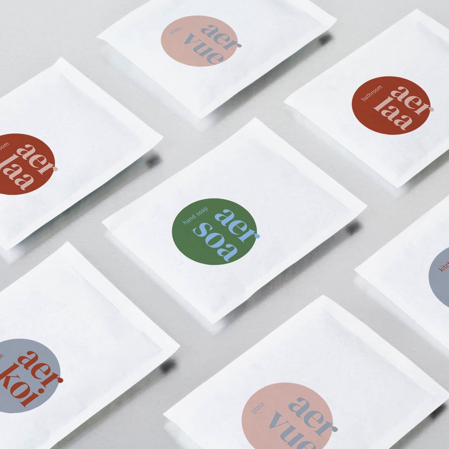 Based on the principle 'less is more', we have conceptualized aer. Since our foundation in Vienna in the year 2019, we have been striving to eliminate single-use packaging while setting new standards in the formulation and product design of home and personal care. From kitchen cleaner to scented hand soap, all our products are designed to eliminate waste and inferior formulations from our daily routine. The name of our brand comes from the Greek aer meaning air (oxygen), referring to the fact that we ship a few grams of powder compared to kilos of liquids for existing, pre-filled home and personal care products. This results in 95% less carbon emissions per shipment we make.